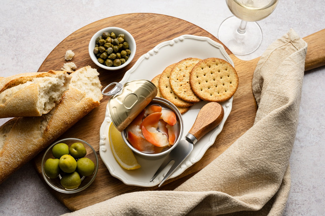 Indulge in the delicate taste of Clearwater's Arctic Surf Clams in brine, sustainably harvested from the Canadian North Atlantic. Hand-packed for freshness, enjoy these clams on their own or elevate your seacuterie board for a luxurious seafood experience, or right out of the tin.